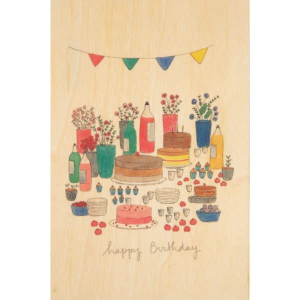 carte en bois painted words hbday orange