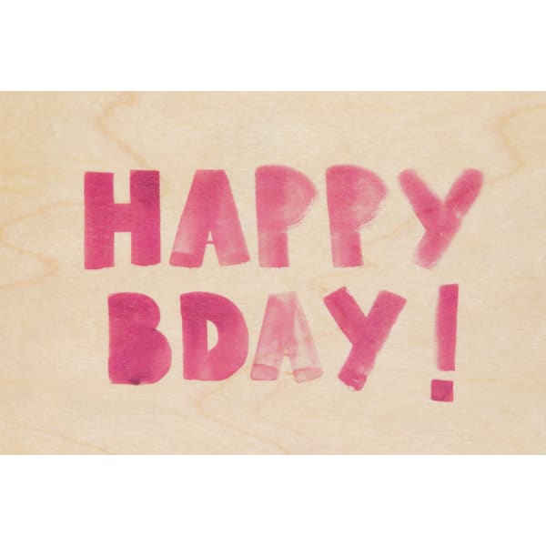 carte en bois painted words hbday pink